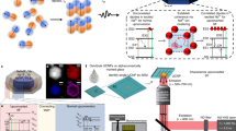 For UC-SF measurements, a customized microscopic spectroscopy system was built and equipped with both continuous-wave (CW) and fs-pulsed laser as two independent excitation sources (Supplementary Fig. 4). We first measured the normal UCL spectrum of 100Nd@Y UCNPs under CW laser excitation at 808 nm with a power density of ~1.10 kW cm-2. As shown in Fig. 1d and Supplementary Fig. 5, the UCNPs exhibited weak luminescence with characteristic emission peaks at 528, 588, and 656 nm, corresponding to the electronic transitions of Nd3+ from 4G7/2 to 4I9/2, 4I11/2, and 4I13/2, respectively. The inefficient UCL of Nd3+ under CW laser excitation is not unexpected since Nd3+ is not a typical UC emitter due to the dense energy levels of Nd3+ that impose deleterious nonradiative energy losses through cross-relaxation and energy migration among Nd3+ to the surface and lattice defects31. By contrast, upon 800-nm fs-pulsed laser excitation with an equivalent power density at average (~1.10 kW cm-2), the UCNPs displayed bright luminescence (insets of Fig. 1d), with 70 times enhancement in UCL intensity and the emergence of new emission peaks from high energy level of Nd3+ at 409 nm (2P1/2 → 4I9/2) and 449 nm (2P1/2 → 4I11/2). Specifically, we found that the decay times of the 4G7/2 → 4I11/2 (588 nm) and 4G7/2 → 4I13/2 (656 nm) transitions of Nd3+ under fs-pulsed laser excitation were different and abnormally shortened to 10.7 and 24.8 ns, respectively (inset of Fig. 1e). These observations are in stark contrast to the normal UCL lifetimes of Nd3+ under ns-pulsed laser excitation, where Nd3+ displayed an identical UCL decay time (τSE) of 2.28 μs at 588 and 656 nm (Fig. 1e). Generally, the decay times of the parity-forbidden 4 f → 4 f transitions of Ln3+ ions are on the μs‒ms range and the decay times of the UCL from the same emitting level should be identical, because each transition dipole shares the same deexcitation channels of the emitting level32. Additionally, in normal UCL, the enhancement of UCL intensity is usually accompanied by the lengthening of UCL lifetime due to the suppressed nonradiative relaxation, while the shortening of UCL lifetime indicates accelerated nonradiative relaxation of excited Ln3+ ions through energy transfer to the lattice or surface defects, which results in decreased UCL intensity33,34. Hence, the observation of remarkably enhanced UCL intensity along with decay times on the ns scale may result from the burst of radiative transition rate of Nd3+ instead of the suppressed nonradiative relaxation, signifying that the upconverted emission of 100Nd@Y under fs-pulsed laser excitation is not a normal UCL process. Instead, it behaves like UC-SF, namely, collective emission of coherent dipoles, wherein the decay time of the emitter τSF ∝ τSE/N (where N is the number of emitters coupled in the coherent state). Actually, Ln3+-doped UCNPs are a multilevel SF system because of abundant electronic transitions within a single Ln3+ ion. For SF in a multilevel system, the emission can occur successively on two cascading transitions at two different frequencies or two transitions with different frequencies sharing a common upper level, which can be in competition for the depletion of this level, due to the different frequencies or different polarizations of the radiation fields30. The transitions from 4G7/2 to 4I11/2 and 4I13/2 of Nd3+ are the Λ-type competing transitions, in which the excited state can decay to multiple ground states with different frequencies35. Therefore, the distinct decay dynamics of the 4G7/2 → 4I11/2 and 4G7/2 → 4I13/2 transitions of Nd3+ indicates the presence of two independent ensembles of coherently coupled dipoles, which may compete for the depletion of the shared upper level of 4G7/2 (Fig. 1f). This phenomenon further confirms the establishment of the dipole-dipole correlations for UC-SF in 100Nd@Y UCNPs upon fs-pulsed laser excitation.