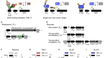 In order to induce apoptosis in mammalian cells upon optogenetic stimulation, we engineered a cell line (ApOpto) to synthesize a constitutively active form of the human caspase-3 (revCASP3, see below) upon blue light illumination. We selected caspase-3 as a molecular target, which acts as a downstream executioner caspase in the apoptotic proteolytic cascade with intrinsic signal amplification due to its enzymatic activity. This achieves a relatively fast response to light stimulation. For this aim, we resorted to an optogenetic gene switch that regulates specific transcriptional activities in cells upon blue light illumination (Fig. 2b). We have recently established vector sets for variants of blue and red light-sensitive optogenetic gene switches compatible with transposase-mediated genomic cell engineering, which synthesizes the genetic components from a few genomic copies in mammalian cells37. In fact, among the repertoire of available optogenetic tools (refer to optobase.org for an overview), optogenetic gene switches provide the highest degree of flexibility, because they separate the optogenetic component from the biological target. Rather than (re-)engineering the light-responsive and the effector components for every application, gene switches may require only minor adaptation, such as the exchange of the target gene of interest to be expressed under the corresponding illumination regime.