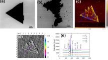 An initial solution was prepared by dissolving 1 mg niobium (V) oxalate (C10H5Nb20.H2O, Alfa Aesar) in 40 mL H2O, which approximates to 1 at% Nb when mixed with 50 mg of W precursor. The initial solution was then subjected to a series of 10:1 dilution to achieve the desired dilute concentration, governed by the \({C}_{1}{V}_{1}={C}_{2}{V}_{2}\) relationship where C1(V1) represents the initial concentration (volume) and C2V2 represents the concentration (volume) of the Nb precursor. After a series of necessary dilutions, 50 mg sodium tungstate dihydrate (Na2WO4·2H2O, Sigma–Aldrich) was added to the dilute Nb volume with addition of H2O to bring to the total water volume to 40 mL, forming the dilute Nb in W precursor mixture. The metal precursor mixture was then drop-cast on SiO2/Si substrate, followed by a blow-dry with a N2 gun. A furnace with a 1 in. diameter horizontal fused quartz tube was used for the chemical vapour deposition (CVD) growth. Throughout the growth process, a mixture of 25 sccm of hydrogen/argon (5% H2/95% Ar) and 25 sccm Ar gas was used as carrier gas; ∼10 mg of S powder was introduced in the upstream region, which reached ∼300 °C during the growth. Before reaching the growth temperature of 850 °C, the furnace was stabilized at 200 °C for 5 min and ramped up at a rate of 20 °C/min, followed by 10 min of annealing at 850 °C. After 10 min of annealing, the furnace was slid to the upstream region to vaporize the sulfur, and the reaction lasted for 5 min. After the reaction, the furnace lid was opened, and the gas flow was increased to 500 sccm to allow for rapid cooling.