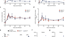 ZIKV-infected tissues were weighed and homogenized in 600 μl or 200 μl PBS. Samples were centrifuged at 2000 × g for 10 min and then stored at −80 °C. For some samples, viral burden was determined by plaque assay. ZIKV RNA was extracted from the tissue and serum samples, then ZIKV RNA levels were determined by Taqman one-step qRT-PCR. Viral burden was expressed on a log10 scale as viral RNA equivalents per g or ml after calculated with a standard curve produced using serial tenfold dilutions of ZIKV RNA. The ZIKV RNA was detected using the published primer (ZIKV-R-F, ZIKV-R-R and ZIKV-RNA-Probe, Supplementary Table S1)46.