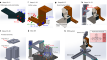 The HITS-Bio platform integrated X, Y, and Z motion axis for 3D movement, equipped with cameras, a digitally controllable nozzle array (DCNA) consisting of 30 G nozzles and associated controls such as pressure regulators, flow controllers, and positioning systems (Supplementary Fig. 2). In the bioprinting stage, two 35-mm Petri dish were accommodated to be used as spheroid reservoir and tissue fabrication area, respectively. Solenoid valves and a pressure sensor digitally regulated the aspiration force and positive pressure, allowing for selective control and internal pressure monitoring of each nozzle. The hardware component of DCNA consisted of stainless-steel needles (30 G, an inner diameter of 150 µm and an outer diameter of 305 µm) arranged in a 4 × 4 array with dimensions of nozzle array ranging from 2.8 to 4.0 mm in width, and the inter-nozzle distance between 527 and 927 µm (Supplementary Fig. 6D), which was enabled by precisely stacked multiple acrylic plates (10 mm × 10 mm, 2 mm thick), micro-manufactured by laser cutting (Supplementary Fig. 1). These nozzles were carefully inserted through the holes on the plates, and after calibrating the surface and arranging the nozzles on the same plane, were adhered to the acrylic plates for stability. Manufacturing tolerance data (Supplementary Fig. 6E), illustrated by the XY positional error before and after the acrylic plate removal, highlights the importance of plate integrity for maintaining precision. The assembled DCNA was coated with Sigmacote® (SL2, Sigma-Aldrich) to siliconize the surface to reduce the surface tension generated between the cell medium and DCNA. The coated DCNA was attached to the HITS-Bio platform via an adaptor, facilitating exact roll-pitch-yaw adjustments to align the DCNA parallel to the bioprinting workspace. An extrusion head for bioink deposition was integrated into DCNA (Supplementary Fig. 2B), with real-time bioprinting visualization and positional verification of DCNA and extrusion nozzle provided by three microscopic cameras offering isometric, bottom, and side views. Vacuum chambers prevented liquid from damaging the solenoid valves during the HITS-Bio process. The entire platform operated through a custom hardware-software interface (Supplementary Fig. 3 and Supplementary Movie 1), enabling precise operation of motion stages, digital control of solenoid valves, monitoring and recording via a computer vision system, and real-time pressure value monitoring within the pneumatic line through a pressure sensor. The software is available at https://github.com/MHKim-software/HITS-Bio.git. The interface setup, descriptions for each button on the interface, and a detailed algorithm for the entire HITS-Bio were also provided in (Supplementary Note 2 and Supplementary Figs. 3 and 4). Defined positions were saved as a.CSV file for reuse, and G-code-derived motion paths were uploaded for automated bioprinting. The system supported 2D and 3D visualization and analysis of objects for position, quantity, shape, and interspace. It also tracks their movement and incorporated safety features like an emergency stop button and maximum axis limits. The bioprinting process, standardized at 10 mm/s for spheroids 300-350 µm in diameter, was adjusted to 0.2 mm/s for lifting spheroids from the spheroid plates to air. Various DCNA sizes, designed for specific nozzle array widths and spacing, were fabricated, and assessed for positional accuracy and angular deviations, potentially resulting from handling errors during micro-manufacturing. Spheroid lifting percent success rates (SR%) for different DCNAs were calculated using the formula: