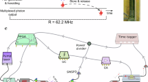 We utilize an electronic setup similar to our previous demonstration, with both the sinusoidal tone and the electrical pulses originating from a common AWG. The sinusoidal tone and RF pulses are applied to the PM and AM, respectively (Fig. 5b). We bias the amplitude modulator at the null point for pulse generation using a quasi-DC electro-optic bias whereby a feedback loop is applied to the low-frequency electrical bias of the modulator loop to overcome the DC bias drift prevalent in TFLN modulators36,58. As our modulators are optimized to minimize bias drift, we are able to compensate for the drift using off-the-shelf electronics and a simple software-based feedback loop. This demonstration thus highlights the ability of our devices to be biased purely electrically with minimal feedback, enabling their operation in cryogenic environments (see supplementary information section 2 for additional discussion).
