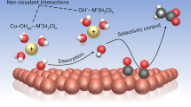 However, bicarbonate-based electrolytes also suffer from two disadvantages. Firstly, it leads to the decomposition of hydrogen peroxide molecules leading to low hydrogen peroxide generation efficiency23. Jawad et al. demonstrated that bicarbonate consumes hydrogen peroxide. Specifically, bicarbonate can react with ·OH to generate water and ·CO3− radicals, and react with hydrogen peroxide to generate water and HCO4− 24. Sablas et al. believe that both carbonate and bicarbonate can react with hydroxyl radicals to form ·CO3−. ·CO3− consumes hydrogen peroxide to form bicarbonate and HO2·, and HO2· can react with ·CO3− to form carbonate25. That is, the presence of carbonate or bicarbonate decomposes the generated hydrogen peroxide. We have also proved that hydrogen peroxide cannot exist stably at ambient in the presence of bicarbonate even without applied bias. Specifically, the concentration of 1 mM hydrogen peroxide in 2 M KHCO3 solution will decrease by 90% after 9 h. Second, bicarbonate is more soluble in the pH range of 7.0 − 9.0. However, if the pH is greater than 9, it will become carbonate with lower solubility24.
