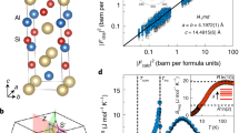NMR measurements were performed using a commercial NMR spectrometer from Thamway Co.Ltd in an NMR-quality 12 T magnet (Oxford Instruments). Data were taken under an external magnetic field of 12 T along the c direction. The nuclear spin-lattice relaxation time T1 of 27Al nuclei was measured by the saturation-recovery method and the recovery of nuclear magnetization M(t) was fitted by a function \(1\,-\,M(t)\,/\,M(\infty )\,=\,{I}_{0}\{0.028\,\exp [-{(t/{T}_{1})}^{\beta }]\,+0.178 \exp [-{(6t/{T}_{1})}^{\beta }]\,+ 0.794 \exp [-{(15t/{T}_{1})}^{\beta }]\}\). For the long wave approximation in antiferromagnetic materials, 1/T1 is given by \(1/{T}_{1}\propto {T}^{3}\int_{{T}_{{{{\rm{AE}}}}}/T}^{\infty }xdx/({e}^{x}-1)\), where TAE represents the magnon excitation gap. For T ≪ TAE, \(1/{T}_{1}\propto \,{T}^{2}\,\exp (-{T}_{{{{\rm{AE}}}}}/T)\)52,53. As shown in the inset of Fig. 2e, 1/T1 is nearly T independent above ~10 K as expected for a paramagnetic phase. Below 10 K, the rapid decrease of 1/T1 indicates a pronounced depletion of spectral weight and the opening of an energy gap in the magnon excitation spectrum; the gap size given by \(1/{T}_{1}\propto \,{T}^{2}\exp (-\Delta /T)\) is Δ ~29 K.