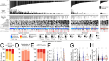 Genome wide copy number alterations were inferred using CNVkit software (ver. 0.9.9)53. An accessible_regions.bed input file was prepared using the CNVkit access function with two parameters: the GRCh37/hg19 reference genome, and the ENCODE project exclude BED file (wgEncodeDacMapabilityConsensusExcludable.bed). This file includes only sequence-accessible regions of the genome to be considered by CNVkit. The targets.bed input file was prepared using the CNVkit target function with three parameters: the targeted DNA-seq SureSelect probes BED file, the GRCh37/hg19 Ensembl GTF (release 87) for gene annotation, and the “split” parameter was specified (to divide larger baited regions into regions closer to the default bin size, 267 bp). The antitargets.bed input file was prepared using the CNVkit antitarget function with two parameters: the targets.bed and accessible_regions.bed files. For each sample, the CNVkit coverage function was used with the inputs described above and the deduplicated BAM file to calculate read coverage levels across the targeted and off-target regions of the genome. This step required the hmmlearn software (ver. 0.2.7). A CNVkit reference was built from the coverage files of 65 samples that had tumor fraction ≤0.05, as determined by ichorCNA. The CNVkit reference function was performed with the “haploid-x-reference” and “sample-sex male” options to correctly estimate coverage levels in male samples. The CNVkit fix function was used to correct for known biases and calculate log2 copy number ratios. The CNVkit segment function was completed using the “drop-low-coverage” option and the “cbs” segmentation algorithm. Finally, the CNVkit call function was used to calculate copy number integers from the log2 ratios, with “haploid-x-reference”, “sample-sex male”, and “drop-low-coverage” parameters. For every sample, the inferred copy number ratios for each segment were plotted as a chromosomal heatmap using R and tidyverse functions. The log2 ratio color scale was winsorized to the range: mean +/− 5 SD (to remove spurious outlier values skewing the signal).