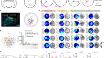 In addition to place cells, we identified LVCs in the calcium imaging recordings (Fig. 2). It can be challenging to determine whether a firing field is a place field or an LV field in a single session, particularly when there is only one landmark on the platform or if the cell has a single firing field. Therefore, we often visually identified LVCs based on their firing properties across sessions46. For example, in one experiment, a landmark vector field was identified because it maintained the same direction and distance relative to a landmark when the landmark’s location was changed (Fig. 2a, d). In another experiment, additional landmarks were placed in an environment (Fig. 2b), and new firing fields formed that had the same bearing and distance to a subset of the new landmarks as the fields had to the original landmarks in the first session (Fig. 2e).