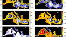 The Adriatic and Aegean Seas are both regions of relatively high productivity (Supplementary Information Fig. 1)40 highly influenced by riverine conditions21,35, which explain the important impacts of the freshwater reduction scenario on their biogeochemical conditions. The overall Mediterranean Sea and the North-western region of the basin show less marked, but still negative, changes in biogeochemical indicators (Figs. 2 and 3), suggesting that reduced freshwater flow into the basin will likely lead to a decrease in the overall marine productivity (see also Supplementary Information Table 1), and in particular in the coastal areas.