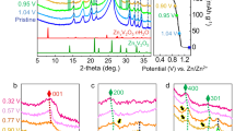 For in-situ XRD measurements, AOH-VO as active material mixed with 20% acetylene black and 10% polytetrafluoroethylene binder were coated on stainless steel mesh with active material loading about 10 mg cm−2. The electrode was assembled similarly to a pouch cell configuration with a cutting hole (∼10 mm in diameter, sealed with polyimide film) in the cathode side of Al soft plastic film for passing through the X-ray. The cell was fully discharged/charged in four consecutive cycles at a specific current of 0.1 A g−1 between 0.2 V and 1.7 V using a LANHE battery electrochemical test M340A (Wuhan LAND Electronic Co. Ltd.).