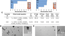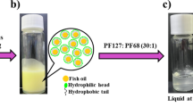 Typically, an n-dodecane solution (560 μL) of β-carotene (0.1% w/w) and PDMS-NH2 (3% w/w) was homogenized with aqueous dispersions (240 μL, 1, 2, 4% w/w, respectively) of SiO2 NPs to give o/w bridged emulsion gels. All samples were flushed with a nitrogen stream for 15 min, then sealed and placed in a 37 °C water bath for 35 days. At different time intervals, 0.5 g of the emulsion gel was taken and added to 2 mL of ethanol, followed by vortex mixing (3,000 rpm for 5 min) to destroy the gel structure. Then 3 mL of n-hexane was added to extract the β-carotene and repeated twice. The content of β-carotene was determined by the absorbance-concentration of the β-carotene standard curve at 453 nm using a UV–vis spectrophotometer. The retention of β-carotene in the bridged emulsion gels can be calculated as: Ct /C0, where Ct and C0 are the content of β-carotene at t and 0 days. A bulk n-dodecane (12 mL) of β-carotene (0.1% w/w) was treated in the same manner as a control.