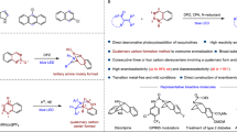 Nitrogen heterocycles are prevalent in pharmaceuticals, agrochemicals, dyes, and natural products76,77,78,79. We envisioned that the cycloaddition of ortho-quinoid ketene methides with imines would offer an intriguing protocol to construct nitrogen-containing cyclic compounds. Herein, we describe the photoinduced catalyst-free [4+2]-cycloaddition of BCBs with imines through regio-selective C1–C8 bond cleavage under mild reaction conditions, affording an array of polycyclic 3,4-dihydroisoquinolinones alkaloids. Furthermore, as a continuity of our interest in synergistic photocatalysis and chiral Lewis acid catalysis80,81,82,83,84,85, the highly catalytic asymmetric version was also accomplished using an inexpensive chiral nickel(II) Lewis acid catalyst (Fig. 1b).