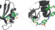 SDS-PAGE was performed using a published buffer system63 and staining with Coomassie brilliant blue. Protein concentrations were determined by measuring the absorbance at 280 nm, A280, with calculated extinction coefficients as provided by the ProtParam server (https://www.expasy.org) according to the formula ε280 = 1490 × nTyr + 5500 × nTrp + 125 × nCystine M−1 cm−1, plus a further increment of 7600 M−1 cm−1 to account for the contribution of the Pap side chain in this spectral region, if applicable.