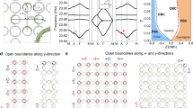 In our simulations and experiments, the lengths of the inter-layer and intra-layer cables are 2.06 meters and 0.43 meters, respectively. The wave speed inside the cable is \({0.66c}_{0}\). Using these parameters and solving Eq. (4), we calculate the band structure of the transmission line network in the Hermitian model depicted in Fig. 1a. The resulting band structure is illustrated in Fig. 1c, where a topological band gap (gray zone) is observed between 31 MHz and 36.3 MHz.