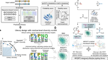 The cell-free DNA library generation was performed as follows: (1) the first PCR was performed in a 10-µL reaction with 1 ng of plasmid template added, (2) 1 µL of DpnI was added and incubated at 37 °C for 2 h, (3) the PCR was diluted 1:4 by the addition of 29 µL of nuclease-free (NF) water, (4) 1 µL of diluted DNA was added to a 3-µL Gibson assembly reaction (self-made)60 and incubated for 50 °C for 1 h, (5) the assembly reaction was diluted 1:10 by the addition of 36 µL of NF water, (6) 1 µL of the diluted assembly reaction was added to a 9-µL PCR reaction. All cloning steps were set up using an Integra VIAFLO liquid handling robot in 384-well PCR plates (Bio-Rad). Primers were designed using Benchling with melting temperature calculated by the default SantaLucia 1998 algorithm. We have noticed that melting temperatures of alternative primer design tools sometimes deviate from those calculated in Benchling, so users should consider this when designing primers. The general heuristics we followed for primer design were a reverse primer of 58 °C, a forward primer of 62 °C, and a homologous overlap of ~45 °C. All primers were ordered from Integrated DNA Technologies (IDT); forward primers were synthesized and received in 384-well plates and normalized to 2 µM for ease of setting up reactions. Additional information on primer design and the codons we used for all 20 amino acids can be found in Fig. S4 and Table S7. All PCR reactions used Q5 Hot Start DNA Polymerase (NEB). Additional information on thermocycler parameters can be found in Table S8.
