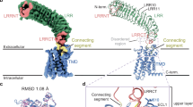 Furthermore, as previously mentioned, another LGR4-RSPO2-ZNRF3(ΔRING) complex with a stoichiometry of 1:2:2 (pentamer A) was derived from the same sample where the structure was obtained with di-heterotrimer (Fig. 2c). In this complex, both LGR4 and the PAD of ZNRF3 remained unchanged. However, the TM helix(a) of dimeric ZNRF3 lacked discernible density, indicating its conformational flexibility (Fig. 2c). The TM helix(b) of ZNRF3 exhibited interactions with the TMD of LGR4 at its N-terminus (Supplementary Fig. 5l–n)
