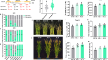 To determine whether variation in the DNR1 allele drives the divergent responses to eCO2 between rice subspecies, we planted a typical japonica variety, Zhonghua 11 (ZH11), with its dnr1 mutants, which mimics the indica DNR1 allele in ZH11 background by reducing DNR1 abundance in 2023 and 2024. We also planted a typical indica variety, Hua-Jing-Xian 74 (HJX74), with a near-isogenic line (NIL) carrying the japonica DNR1 allele in 2022 and 2023. Details of these plant materials can be found in Zhang et al.23. The plots for each treatment measured 1.5 m × 2 m. Two healthy rice seedlings per hill were transplanted at planting spaced at 15 cm × 25 cm intervals. N fertilizer, in the form of urea, was applied at a total rate of 180 kg N ha−1. The N fertilizers were divided into three applications: 40% at soil tillage, 30% at the tillering stage, and the remaining 30% at the jointing stage. Phosphorus fertilizer, at a rate of 120 kg P2O5 ha−1, was applied at soil tillage, while potassium fertilizer, at 160 kg K2O ha−1, was split equally between the soil tillage and jointing stages. All other agronomic practices were conducted in accordance with local agricultural recommendations.