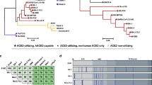 a Amino acid phylogenetic tree of selected Sarbecovirus S proteins. The scale bar represents the number of mutation events per residue. Clade assignments are indicated by branch and node color (Clade 1A: blue; Clade 1B: dark red; Clade 2: violet; Clade 3: teal; Clade 4: orange). b Amino acid phylogenetic tree of selected Sarbecoviruses S proteins from clade 1. Branch and node colors are the same as in Fig. 1a. c Sequence homology of selected clade 1 Sarbecovirus S1 subunits. d Sequence homology of selected clade 1 Sarbecovirus S2 subunits.
