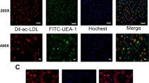 The HRMECs were cultured and processed in 12-well plates. The cells were incubated with 4% PFA for 30 min at room temperature, permeabilised with 0.1% Triton X-100 (Solarbio, China) for 30 min, and blocked with 10% goat serum (Sigma, USA) for 1 h. HRMECs were then incubated with anti-CD31 primary antibody (1:200, Proteintech, 11265-1-AP) at 4 °C overnight. The next day, the HRMECs were incubated with FITC-conjugated secondary antibodies for 1 h (Zsbio, China). Afterwards, the nuclei were stained with DAPI (Zsbio, China). Images were captured using a fluorescence microscope (Olympus BX53, Tokyo, Japan).