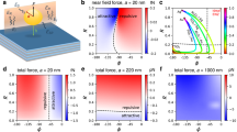 We accessed the finite-difference time-domain (FDTD) two-dimensional (2D) static electric field simulation to gain theoretical insight into interaction with pore gap (dgap) and triboelectric effect in the single particle level. We preferentially assigned the evaluated positive or negative surface charge density of ZnS:Cu (σ2 = 10 nC/cm2) and three polymers (σ1-PDMS = −31.9 nC/cm2, σ1-EF = −102.1 nC/cm2, σ1-DS = −146.7 nC/cm2), modeling the semi-circular and semi-elliptical surfaces of particles from the center of ZnS:Cu (Supplementary Table 4). Note that we only focused on the PDMS, EF, and DS among all candidates to consider the possibility of ML process. To satisfy charge balance, the net positive charges at the dgap boundaries are associated with the negative surface charge density, assuming a charge distribution across the entire contact interface (Supplementary Fig. 16). Given a uniform charge distribution over 1/20 of the hemisphere area (theoretical, θ = 18°) in a dgap of 10 µm, the electric field (E-field) on the ZnS:Cu interface is calculated to be 2.3 × 106, 3.3 × 106, and 3.7 × 106 V/m, respectively, depending on the PDMS, EF, and DS (Fig. 4a–c). These values not only manifest the effective threshold voltage on ZnS:Cu (106–107 V/m) in the AC-EL process36,37,38, but also bestow the possibility of ML activation in aspect of single particle level. Since the dgap held in constant at a 10 µm, the trend of E-field, by means of the triboelectric effect, linearly increase according to the elevating trend of surface charge density in order of PDMS > EF > DS, which strongly support our hypothesis that triboelectric effect is ascribed to surface charge density when elasticity held in constant. This result also leads us to realize that elasticity only contributes to the ability to regulate the dgap, not the triboelectric effect, hence, the ML brightness may seem to be regulated by elasticity, but it is for the charge accumulation ability depending on the dgap. To verify this hypothesis, we calculated additional E-fields for different dgap of 10, 20, 30, and 40 µm, respectively, which could be attributed to the elasticity of the polymer matrix in real ML process (Supplementary Fig. 17). As suggested, the E-fields of each polymer matrix are clearly increased proportionally with dgap, as well as exhibit the elevating trend depending on tendency of polymer matrix: PDMS < EF < DS. In particular, we focused on the E-fields of EF and DS at 10 µm (3.3 × 106 and 3.7 × 106 V/m), which are higher than those of PDMS at 30 µm, attributed to superior triboelectric properties. From this fact, we strongly suggest that outstanding ML brightness can be manifested despite of smaller dgap ascribed to high elasticity of polymer matrices.