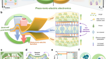 Figure 1A schematically shows the formation process of BUE-PVDF film with the electrohydrodynamic (EHD) printing technology. The deposited droplets on the substrate form Z-shaped tracks, and the layer-by-layer accumulation of the tracks produces a mesh-like topography structure. At the same time, the charge carried in ink will accumulate within this stacking of the membrane material. For most printed layers at the interior of BUE-PVDF, uniformly distributed high-density positive charges (Interior charge) are expected to be stored inside the material. Meanwhile, negative charges (Surface charge) with proportional density should be absorbed from the air to the outmost layers on both surfaces to balance the inner electric potential. Given that the printed charge tends to dissipate outside the film during printing32, the naturally formed pore structures (inset of Fig. 1A) could act as traps to store the printed charge in this study. By printing and preserving high-density charge throughout the whole material, the deliberately designed BUE structure could fully exploit the deformation potential of crystal grains at the interior of PVDF films.
