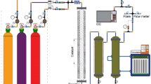 Figure 3 depicts the time dependence of the C 1 s spectra related to the FT reaction of the Co\(\left(0001\right)\) surface by applying and removing CO while keeping a constant H2 flow on the sample at 200 mbar total pressure. We performed experiments at 406 K (panel a with line extracts shown in b) and at 506 K (panel c with line extracts shown in d). At 406 K the sample surface is covered with a tiny amount of species at 284.5 eV initially. Upon exposure with CO there immediately appears intensity in the CH2 and COtop regions (283.5 and 285.7 eV, respectively), indicating that some CO is dissociated and hydrogenated. Over an interval of approximately 30 min there is a continuous growth of the 284.5 eV state, indicating the appearance of longer chain hydrocarbons due to chain growth. Upon removal of the CO in the reaction mixture this component remains for a certain time while COtop and CH2 are reacted away within the time resolution of this experiment. Continuing in this configuration, the 284.5 eV hydrocarbon peak intensity reduces, indicating facile reaction and departure from the surface aided by the presence of H2, which supports our claim that a reaction is ongoing. We are here observing the rate limitation of the final hydrogenation step that removes the hydrocarbon species on the surface. A competing reaction to the hydrocarbon chain growth is the fast CH2 hydrogenation into methane, which also explains the swift vanishing of the CH2 contribution upon CO gas removal from the reaction mixture27.