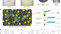 Molten Sn, with a much lower price than Ga16, is capable of dissolving multiple elements and lowering the melting points of associated alloys to below 250 °C, thus holding potential as an ideal solvent17,18,19. Owing to the larger atomic radius (1.45 vs. 1.30 Å)20,21, higher electronegativity (1.96 vs. 1.81)22 and faster self-diffusion rate at catalytically relevant temperatures (3.35 vs. 1.17 × 10−5 cm2/s)23 of molten Sn compared to liquid Ga, dissolved atoms in Sn solvent can exhibit different reactivity and distributions compared to their behavior in Ga solvent. The distinct surface properties of Sn and Ga may also impact the catalytic performance of their respective liquid alloys. For instance, although oxide layers spontaneously form on both Ga and Sn surfaces with negative Gibbs free energies, the oxide layer on the Sn surface does not fully passivate the interface, potentially exhibiting enhanced surface access for catalytic activities24,25,26. These fundamental differences between Sn and Ga can significantly alter the structures and, consequently, catalytic properties of dissolved atoms. Hence, by tuning the compositions in Sn solvent, distinctive structures of fluidic atoms could be established, possibly enabling characteristic adsorptions and facilitating reactions that are not feasible in other media.