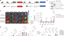 To introduce Cas12a in vivo, we obtained the E174R/S542R/K548R-substitution variant (enhanced) of Acidaminococcus sp. Cas12a (enAsCas12a; derived from an unclassified Acidaminococcus strain (BV3L6))6, which has previously been utilised in functional genomic screening7,8. The enAsCas12a open reading frame was further modified to contain additional nuclear localisation sequences, which can improve enzyme functionality9. The enAsCas12a cDNA was then cloned into the Cre-recombinase-inducible expression cassette of a previously described mouse Rosa26-targeting construct10, further modified to include an IRES-mCherry marker (instead of IRES-GFP). enAsCas12a knock-in (enAsCas12aKI) mice were then generated by pronuclear microinjection of this construct into C57BL/6 one-cell stage embryos. We confirmed enAsCas12a insertion by long-range PCR (Supplementary Fig. 1A). Once generated, homozygous enAsCas12aKI/KI mice were crossed with CMV-Cre mice to remove the loxP-flanked neo/stop cassette (Fig. 1A) and allow constitutive, whole-body enAsCas12a expression, as evidenced by measurement of peripheral blood mCherry expression (Supplementary Fig. 1B). This was further demonstrated by mCherry expression in haematopoietic cells/tissues via flow cytometry; almost 100% of peripheral blood cells were mCherry + , and ~80% of haematopoietic organ cells (thymus, bone marrow, spleen, and lymph nodes) had detectable marker fluorescence (Supplementary Fig. 1C). Aware that these mice may be used with enAsCas12a in a heterozygous state, we examined whether there was any difference in transgene expression (via mCherry reporter signal) between the haematopoietic organs derived from enAsCas12aKI/+ and enAsCas12aKI/KI mice. Indeed, we observed ~2-3× greater mCherry fluorescence in the homozygous enAsCas12aKI/KI tissues compared to the heterozygous enAsCas12aKI/+ tissues (Supplementary Figs. 1D, E). As expected, this difference in enAsCas12a expression was also present at the transcriptional level when assessed by qRT-PCR. While enAsCas12a expression in homozygous enAsCas12aKI/KI tissues was largely similar (Supplementary Fig. 1F), comparisons between wild-type (WT), enAsCas12aKI/+, and enAsCas12aKI/KI tissues clearly showed increased expression enAsCas12a in enAsCas12aKI/KI tissues (Supplementary Fig. 1G).
