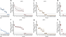 A variety of influenza virus strains have now been tested for their sensitivity to pasteurisation, and these strains will likely have at least some differences in their susceptibility to thermal inactivation (Tables 1–2)29,34. Differences in the concentration of virus could also potentially create artefactual differences in thermal inactivation, due to interactions between virus particles and the tube wall40. There is some suggestion of both of these effects in our results (Fig. 1a–c). However, importantly, we can compare across our results and those of others and draw overall conclusions that are not affected by these minor variations (Table 3).