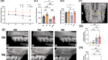 Total RNA was extracted from the alveolar bone tissues with TRIzol reagent (Invitrogen, CA, USA) according to the manufacturer’s instructions. cDNA was obtained by reverse transcription of the RNA samples using a reverse transcription kit (Vazyme Biotech, Nanjing, China). The cDNA was then subjected to RT‒qPCR using ABI SYBR Green Master Mix (Life Technologies) on an ABI Prism 7500 sequence detection system. The PCR was carried out using following conditions: 95 °C for 10 min and 40 cycles of 95 °C for 15 s, 60 °C for 10 s, and 72 °C for 15 s, followed by melting curve analysis to confirm primer specificity. The primers are listed in supplementary Table 1. The target gene expression levels were calculated by 2−△△CT methods and normalized to β-actin. All reactions were conducted in triplicates.