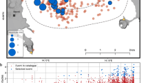 The seismic network of the Campi Flegrei is developed and managed by the INGV-OV. It includes 27 stations distributed within the rim of the caldera. Moreover, four stations were installed in the Gulf of Pozzuoli82. Most of the stations are equipped with three-component broadband seismometers, with a sampling rate of 100 samples per second, and with accelerometers, whose signals are acquired at 200 samples per second. The data is transmitted in real-time to the INGV-OV acquisition center. The figures showing seismograms and spectrograms use data from the CSOB station, which is in an optimal position to record the seismic sequences that are the object of this work (Fig. S5 in Supplementary Material). In 2020, the location sensibility in space of the Campi Flegrei seismic network was characterized by a magnitude threshold ranging between 0 and 0.523. In the Solfatara-Pisciarelli area, where a very local seismicity has become increasingly evident since 2010, the seismic network is denser and allows us to locate earthquakes with magnitude (Md) < 0, when the seismic noise is particularly low. To describe the general trend of the current long-term unrest, we used the locations of the earthquakes from 2005 to 2024, and the seismic catalogue of the Campi Flegrei from 2004 to 2024 (Fig. 1a, b, c). The locations and the seismic catalogue are extracted from the INGV-OV seismological database (https://terremoti.ov.ingv.it/gossip/flegrei/index.html, last accessed 18 October 2024). The catalogue used in this article is also provided as a Source Data file (Data 3). The velocity model used by INGV-OV is reported in Calò and Tramelli83.