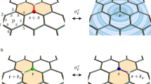 where ϕn(r) = 〈r∣n〉, with \(\left\vert n\right\rangle\) being an eigenstate of \({H}_{{{{\mathcal{M}}}}}\). Note that \({{{{\rm{Tr}}}}}_{{{{\rm{cell}}}}}\) is the trace of intracell degrees of freedom, which corresponds to the sum of intra-sublattice correlations whose momentum-space representation is periodic within the first Brillouin zone (BZ). Since the ground state of IGP is translation invariant, all flux configurations in the ansatz should form a representation of the translation symmetry. Therefore, there is a well-defined momentum resolved spectral function A(k, ω) that is the center-of-mass average of A(r1, r2, ω). This center-of-mass average is equivalent to an average over flux configurations connected by translations, within the average over all flux configurations. As all the Bloch eigenstates in the clean limit form an orthonormal basis, we expand eigenstates of a disordered system into \(\left\vert n\right\rangle={\sum }_{\alpha {{{\bf{k}}}}}{c}_{\alpha {{{\bf{k}}}}}^{n}\left\vert \alpha {{{\bf{k}}}}\right\rangle\), where α is the band index and k the momentum of the Bloch states. Substituting this into Eq. (6) and averaging over center-of-mass R = (r1 + r2)/2, we have