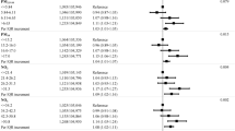 During 2006–2022, the average concentrations (SD) of NOx and NO2 were 24.5 (11.8) μg/m3 and 16.6 (6.6) μg/m3, respectively. The concentrations of NOx exhibited an overall declining trend but manifested large spatial variations (Supplementary Figs. S2–S4). NOx exhibited the highest yearly average exposure in 2006 (38.9 μg/m3). Supplementary Fig. S5 illustrates the Spearman’s correlation coefficients (rs) among air pollutants. NOx exhibited positive correlations with PM2.5, particulate matter with aerodynamic diameter ≤ 10 μm (PM10) and sulfur dioxide (SO2) (rs = 0.434–0.777).