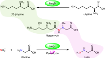 Preliminary investigations revealed that amide synthases show homology to arylamine N-acetyl transferases (NAT)13. These catalyze the transfer of acetyl groups from acetyl-CoA (5) to a broad spectrum of xenobiotic arylamines 6, arylhydroxylamines, and arylhydrazines, respectively (Fig. 1B)14,15,16. Mechanistically, the transfer relies on three protein domains of approximately equal size and a strictly conserved catalytic triad consisting of cysteine, histidine, and aspartate in the first two domains. The acetyl group of acetyl-CoA (5) is first transferred to the catalytic cysteine and then to the acetyl acceptor, arylamine17,18.