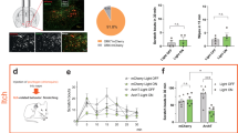 While the requirement for the ACC in pain processing has been well-demonstrated, there are few direct lines of evidence implicating the ACC in itch processing23. Thus, we first confirmed that the ACC is required for detecting both itchy and painful sensations. We used a mixture of the competitive AMPA/kainate receptor antagonist CNQX and the voltage-gated Na+ channel blocker TTX to suppress neuronal activity in the ACC. Bilateral microinjection of CNQX + TTX into the ACC reduced scratching behavior induced by injection of the pruritogen histamine, as well as the nociceptive response induced by injection of the algogen formalin (Fig. 1a–c). Next, we tried to identify the ACC neuronal subsets activated by pain or itch stimuli. As a prerequisite, we first verified the pruritogenic and algogenic purity of histamine and formalin, respectively. Histamine injections into the nape of the neck mainly induced antipruriceptive responses such as scratching, rarely inducing antinociceptive responses such as wiping with the forepaw (Fig. 1d). Rather than inducing antipruriceptive responses such as biting, formalin injections into the hindpaw induced antinociceptive responses such as licking, shaking, and lifting (Fig. 1e). In addition, we confirmed literature reports that the ACC does not show somatotopy24. In our previous study, we showed enhancement of fos (+) cells in the ACC induced by harmful stimuli25,26. When we injected either histamine into the nape of the neck or formalin into the hind paw, we observed enhancement of fos (+) cells throughout the ACC without concentrations in specific subregions (Fig. 1f). Additionally, most of these fos (+) cells were co-immunostained with CaMKII, an excitatory neuronal marker rather than GABA, an inhibitory neuronal marker (Fig. 1g–j).