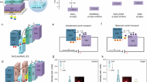 The ultraviolet photoelectron spectroscopy (UPS) measurement of V2O5 shows the work function (WF) and the valence band maximum of 5.10 eV and 7.87 eV (Supplementary Fig. 19). Then the conduction band minimum of the V2O5 film is determined to be 5.52 eV based on its bandgap of 2.35 eV (Supplementary Fig. 20). Supplementary Fig. 21 illustrates the energy level diagram. The detailed energy diagrams following Fermi level alignment are depicted in Fig. 3d, e. A significant band bending occurs at the C60/MoO3 interface due to the considerable work function mismatch. This bending is expected to induce a large Schottky barrier at the interface, which hampers efficient charge recombination within the ICL.