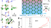 The SANS-I experiment was conducted on the same sample and the same sample orientation with respect to the scattering plane. The magnetic field was applied a using a horizontal 6.8 T cryomagnet (opening angles 45°), with the magnetic field being applied along the incident neutron beam [close to the (\(\overline{1}10\)) reciprocal direction of the sample]. The sample and magnet were rotated around the vertical axis over 25° range in 0.5° steps to continuously span the momentum range of interest [the magnetic satellites in the (H K 3/2) plane]. The individual diffraction patterns collected at different sample angles by 2D detector of 0.96 × 0.96 m2 were combined into a 3D dataset. The 3D dataset was then sliced in the (H K 3/2) plane for further analysis. Due to the geometry of the SANS-I setup, the resolution ellipsoid is elongated along the (00L) reciprocal direction, whereas the resolution in the (HK0) plane (the plane of the SSL intensity) is significantly narrower and is approximately twice better than in the DMC measurements. For all the measurements, we subtracted the pattern collected at 50 K as a background, see Section S4 in the Supplementary Information31.