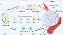 Female mice subjected to various treatments exhibited negligible differences in body weight (Supplementary Fig. 22), preliminarily suggesting that all treatments possessed good biosafety. Ultimately, the female mice were humanely euthanized, and blood and major organs were collected for further assessment of in vivo biosafety. Supplementary Fig. 23 exhibits the outcomes of blood biochemical analyses encompassing liver function indicators such as alanine aminotransferase (ALT), aspartate aminotransferase (AST) and albumin (ALB), alongside renal function markers including blood urea nitrogen (BUN), creatinine (CREA) and urea. The hepatic and renal function parameters of the mice were within the normal range, confirming that the bacterial drug delivery treatment intervention did not exert any significant adverse effects on liver or kidney function. In addition, most of the hematological parameters remained within the normal range (Supplementary Fig. 24), suggesting that the EcN@INX-2 + L group had good hematological compatibility. The analysis results indicated an absence of significant indications of injury or infection in female mice post various treatments, affirming their enduring biosafety. To delve deeper into systemic inflammation, C-reactive protein (CRP) levels were measured, revealing no indications of systemic infection induced by the EcN@INX-2 + L group (Supplementary Fig. 25). Evaluation of tissue damage in female mice was conducted through H&E staining, demonstrating no observable harm or inflammation in the vital organs of tumor-bearing female mice across all treatment groups post-treatment, underscoring the substantial histocompatibility and high biosafety of the EcN@INX-2 + L group (Supplementary Fig. 26).