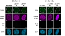 Data analyses were performed using GraphPad Prism 8, Microsoft Excel, and SPSS, as applicable. Significant differences were determined using a two-tailed Mann–Whitney U test (fluorescence intensity). One-way ANOVA analysis with Tukey test (cell viability assays) or an unpaired two-tailed Student’s t-test (qPCR, ChIP, HR reporter, and other experiments). In all cases: ns, not significant. The data in Figs. 1i–j; 2b; 5a, c, e-g; 6c, d; 7a–g; 8f; Supplementary Figs. 1i; 5b–e, o–p; 7c–n are representative of 3 independent experiments.