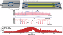 Here, τd represents the time delay between the two arms of the interferometer, which is 4.8821 μs in this work. To prevent divergence at offset frequencies where \(\sin (\pi f{\tau }_{d})=0\), a cut-off frequency is introduced as 1/τd. Beyond this threshold, only data points corresponding to offset frequencies of (N + 1/2)/τd, where N is a positive integer, are plotted to ensure the accurate representation of the phase noise data.