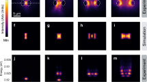 The topological characteristics of the two BIC polariton condensates were investigated by probing the far-field intensity distributions of polariton lasers (Fig. 3g–i)37. Both BIC polariton condensates exhibit doughnut-shaped laser emission profiles in the far field, of which the dark centers are topological phase singularity points63. Upon passing through a linear polarizer, the laser emission profiles evolve from the doughnut shape into double-lobe shapes, and these lobes rotate with the polarizer, which reveals the polarization vortex nature of the BIC polariton lasers64. More interestingly, there is a notable difference in the lobe rotations, implying different topological properties. The BIC1 and BIC2 vortex laser lobes rotate in the same and opposite directions with respect to the polarizer, respectively, while at the same rate as that of the polarizer. This indicates that BIC1 and BIC2 polariton condensates carry topological charges of +1 and −1, respectively65. The polarization-dependent laser beam profiles further reveal the polarization vector fields of polariton condensates (Fig. 3h–j), which is in excellent agreement with the calculated polarization vortices with different topological charges (Supplementary Fig. 19). Taken together, we realized the imprinting of tunable topological charges to polariton lasers by exploiting tailorable BICs.