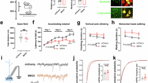 In the IPSC recordings, we found that stroke increased the IPSC frequency (Fig. 7i) without changing the IPSC peak amplitude (Fig. 7j), indicating increased inhibitory synaptic inputs after stroke. Conversely, rehabilitation showed no significant changes. In the GRASP study, stroke decreases the fraction of PV interneuron synapses without total inhibitory synapse number, and rehabilitation restores these abnormalities. Thus, stroke-projecting neurons may also show fractional changes in IPSCs. We further analyzed the IPSC data to determine whether our IPSC recordings capture PV interneuron functionality. Since PV interneurons target the α1 subunit-containing GABAA receptors, they predominantly generate fast-rising IPSCs52,53,54. Also, the somatic location of PV interneuron inputs results in large-amplitude IPSCs. We have previously shown that the loss of fast-rising large amplitude IPSCs in a mouse model of Alzheimer’s disease mirrors the functional and physical loss of PV interneurons55. Using as thresholds the mean rate of rise and peak amplitude of all recorded IPSCs, we estimated the fraction of large amplitude fast-rising events in each group, most likely originating from PV interneuron inputs. The data show a reduction in the fraction of large amplitude fast rate of rise IPSCs following stroke, with recovery observed after rehabilitation (Fig. 7k), indicating that stroke reduces, and rehabilitation recovers fractional synaptic inputs from PV interneurons. Additionally, these findings are consistent with the idea that the increased IPSC frequency observed in stroke animals is primarily attributable to small-amplitude or slow-rising inhibitory synaptic inputs from interneurons other than PV interneurons.