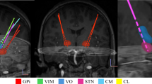 To assess DBS lead placement, localization was performed using Lead-DBS version 3.0 software (https://www.lead-dbs.org/)68, in keeping with the previously reported methodology. High-resolution pre- and postoperative T1-weighted 3-dimensional spoiled gradient echo (3D-SPGR) MRI scans were acquired for each patient. Other acquisition parameters include voxel size = 1 × 1 × 1 mm3, repetition time (TR) = 9.0/11.9 ms, echo time (TE) = 3.7/5.0 ms, flip angle = 12°/20°). Pre- and postoperative images were linearly registered using SPM1271 and non-linearly normalized to a Montreal Neurological Institute (MNI) template brain (ICBM 2009b NLIN asymmetric) using ANTs SyN and subcortical refinement (http://stnava.github.io/ANTs/)72. DBS electrode trajectory was estimated using a semiautomated trajectory reconstruction and manually refined by an experienced user as necessary73,74. Since the directionality of the leads was not utilized during the recording sessions, all leads were recreated as omnidirectional.