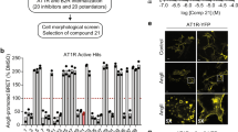The TGFα shedding assay, which measures the activation of Gq/11 and G12/13 signaling15, was performed as described previously16. Briefly, a plasmid encoding an ETB construct with an internal FLAG epitope tag or was transfected, together with a plasmid encoding alkaline phosphatase (AP)-tagged TGFα (AP-TGFα), into HEK293T cells by using Lipofectamine 2000 (ThermoFisher Scientific) (200 ng ETB plasmid, 500 ng AP-TGFα plasmid, and 2.5 µl of Lipofectamine 2000 per six-well culture plate). After a 1-day culture, the transfected cells were harvested 0.5 mM EDTA-containing PBS, centrifuged, washed, and resuspended in Hank’s Balanced Salt Solution. The cell suspension was seeded in a 96-well plate (cell plate) at a volume of 90 μl per well and incubated for 30 min in a CO2 incubator. The cells were followed by the addition of serially diluted RES-701-3. After a 4 h incubation in the CO2 incubator, aliquots of the conditioned media (80 μl) were transferred to an empty 96-well plate (conditioned media (CM) plate). The AP reaction solution (10 mM p-nitrophenylphosphate (p-NPP), 120 mM Tris-HCl (pH 9.5), 40 mM NaCl, and 10 mM MgCl2) was dispensed into the cell plates and the CM plates (80 µl per well). The absorbance at 405 nm (Abs405) of the plates was measured, using a microplate reader (SpectraMax iD3, Molecular Devices), before and after a 1 h incubation at room temperature. The decrease in AP-TGFα release signal by RES-701-3 was calculated by setting the spontaneous reaction of AP-TGFα release in the absence of the compound as the baseline. The AP-TGFα release signals were fitted to a four-parameter sigmoidal concentration-response curve, using the Prism 10 software (GraphPad Prism), and the pIC50 (equal to −log10 IC50) were obtained.