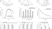 Bisection of fluorescent reporters in two complementary fragments is a general approach for the development of methods to image or control the proximity of proteins24. Using the split site 114–115 previously used for splitting FAST variants25,26,27, we split-nirFAST into two complementary fragments dubbed nirFAST1-114 and nirFAST115-125. We evaluated the complementation of this split system (dubbed split-nirFAST) by fusing nirFAST1-114 to the C-terminus of the FKBP-rapamycin-binding domain (FRB) of the mechanistic target of rapamycin (mTOR), and nirFAST115-125 to the C-terminus of the FK506-binding protein (FKBP). As FKBP and FRB interact in the presence of rapamycin28, the quantification of NIR fluorescence without and with rapamycin allowed us to quantify the efficiency of complementation of split-nirFAST in the absence and in the presence of interaction at various fluorogen concentrations (Supplementary Fig. 14). Flow cytometry analysis revealed that split-nirFAST displayed efficient complementation in cells with both HPAR-3OM and HPAR-3,5DOM regardless of the presence of rapamycin (Supplementary Fig. 14a, b, e). Similarly to what was observed for other split-FASTs, self-complementation of the ternary fluorescent assembly increases with fluorogen concentration. The high self-complementation of split-nirFAST680 and split-nirFAST715 in cells was also observed by confocal microscopy (Supplementary Fig. 14c, d, f, g).