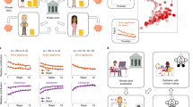 We devised an infinitely repeated multiplayer trust game, based around the challenge of sustaining a common pool resource. The social planner is assumed to be an individual or institution that decides who gets what by allocating monetary resources to \(p\) human recipients32,33. The allocation mechanism can either be designed by human hand or discovered by a reinforcement learning (RL) agent. On each round \(t\) of the game, each recipient \(i\) is allocated an endowment \({e}_{i,t}\) from a common pool with resources \({R}_{t}\) (so that \({\sum}_{i}{e}_{i,t}\le {R}_{t}\)) and freely chooses to make a reciprocation 0\(\,\le {c}_{i,t}\le {e}_{i,t}\) back to the pool, with the remaining surplus \({s}_{i,t}=\,{e}_{i,t}-\,{c}_{i,t}\) retained for private consumption. The mechanism determines the level of resources that is allocated to each player, including no allocation. The pool is initialised to its maximum value \({R}_{0}\) and updated on each round so that \({R}_{t}=\,\min ({R}_{0}\,,{R}_{t-1}+{\varDelta R}_{t})\) with \(\varDelta {R}_{t}=-{\sum}_{i}{e}_{i,t}+(1+r){\sum}_{i}c\) where \(r\) is a growth factor. Imposing a maximum value on the pool reflects the assumption that in many settings (e.g. ecosystems, certain business models) resources cannot grow beyond a fixed carrying capacity. This abrupt nonlinearity can also reflect that individual business models, technologies or satiated markets can reach maximums of growth. The game continues for an unknown number of rounds (at which point any surplus funds in the pool are lost) or until the pool is fully depleted. The agent objective was to discover an allocation mechanism that maximises the aggregate surplus over rounds and players \({\sum}_{i}{\sum}_{t}{s}_{i,t}\). For all games described here, we used \(p=4,\,{R}_{0}=200\), and \(r=0.4\). We provide an illustration of the game in Fig. 1A, and an overall roadmap for our research project in Fig. 1B.