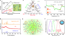Phase determination of the prepared samples was conducted using a MiniFlex 600 powder X-ray diffractometer (Rigaku) with Cu Kα radiation (λ = 1.540593 Å) over a data collection range of 10°–70° at a scanning speed of 5° min−1. Microstructural analysis was performed using SEM (JSM-6700F, JEOL, Japan and SU8010, HITACHI, Japan). TEM and HADDF-STEM images were acquired at room temperature using a spherical aberration-corrected STEM (JEM-ARM 200 F; JEOL, Japan). The electron-transparent cross-sectional STEM specimen was prepared by focused ion beam milling (Helios G4; FEI/Thermo Fisher Scientific, USA) and further thinned by focused Ar-ion milling (NanoMill 1040; Fischione Instruments, Export, PA, USA). The elemental distribution within the PiGFs was analyzed using XRF spectrometer (M4 Tornado, Bruker, Germany). The distribution of phosphor particles on the surface of PiGF was examined using an optical microscope (HD, LUO SI, China). The 3D distribution of phosphor particles within the PiGF was investigated using CLSM with an excitation wavelength of 405 nm (A1 MP, Nikon, Japan). The surface roughness of the PiGF was analyzed using a white light interferometer (LAMBDA, RTEC, USA). Sample porosity distribution and porosity analysis were carried out by using micro-CT (Nanovoxel-3432E, Sanying Precision Instruments, China). To be mentioned, the pores smaller than 500 nm cannot be detected due to the resolution limit of CT scanner. The thermodynamic parameters were determined using a DTA instrument (STA449 F5, Netzsch, Germany). The refractive index of glass sample was measured by a digital refractometer (RDB, GEM Instruments). The full transmission spectra were recorded by using a UV-visible-NIR spectrophotometer (Lambda 950, Perkin Elmer). The IQE of luminescence was measured based on a 455 nm semiconductor laser (3 W), an integrating sphere, a cooling-heating stage, and a fiber optic spectrometer. The integrating sphere was assembled onto a cooling-heating stage, and the luminescence signal was transmitted to the spectrometer (Ocean Optics, QE pro) via a fiber. IQE was calculated by the ratio of emitted to absorbed photons. The PL and PLE spectra, as well as fluorescence decay curves, were recorded using a fluorescence spectrometer (FLS920, Edinburgh Instruments) equipped with a 400 W xenon lamp and a 470 nm pulsed laser source. Samples were placed on a cooling-heating stage (Linkam Scientific Instruments, THMS600E) and held for 2 min at different temperatures before temperature-dependent PL spectrum measurements were taken. The photometric parameters of the samples under blue laser excitation were collected using a homemade laser illumination system, which consisted of a custom-made integrating sphere with a diameter of 10 cm, a 22 W blue laser (Ningbo Yuanming Photoelectric, LSR455CP), and a fiber optic spectrometer (Ocean Optics, QEpro). It should be noted that the incident 22 W blue laser inevitably experiences losses after passing through the lens, resulting in a maximum light power of 17 W actually reaching the sample. The testing optical path was set in a reflective mode, with the incident laser spot having an approximately circular shape and an area of about 0.628 mm². The sample was adhered to a rotating aluminum wheel that was driven by a high-speed rotating motor with a rotation speed of 3000 rpm. The optical power of the blue laser was measured using a laser power meter equipped with a thermopile power probe (model 30A-BB-18, Ophir).