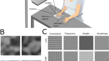 where \(\sqrt{{(x-{x}_{f})}^{2}+{(y-{y}_{f})}^{2}}\le 45\). The haptic rendering thus takes the shape of a rotating sinusoidal surface with a diameter of 90 mm whose height \({z}_{f}\) is determined by the depth of the press and position \(({x}_{f},{y}_{f})\) is determined by the fingertip’s position. The compression control algorithm for the boundary servos is calculated directly from the equation of the surface, referring to the Supplementary Note 7. By continuously stroking in the recognition area, the movement of the finger can be displayed continuously on the 2D CRS, and the height of the bump can be controlled by the depth of the press in the recognition area. The latency of the CRS device is 75 ms. When the CRS device works with a VR environment, the latency of the whole system is about 160 ms (See Supplementary Note 11 for details on the measurement method).
