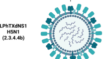 For the genetic stability test of DelNS1-cH5N1 and DelNS1-mH5N1 viruses, the rescued virus passage 0 (P0) DelNS1 viruses, DelNS1-cH5N1 and DelNS1-mH5N1were serially passaged 10 times at 33 °C in 9-day-old chicken embryonated eggs to evaluate their genetic stability. After each passage, viruses were diluted 100-fold in PBS and the passage was repeated. Following multiple passages (P5 and P10), viral RNA was extracted by viral RNA extraction kit (Qiagen). cDNA was synthesized using the High-Capacity cDNA reverse transcription kit (Invitrogen) and uni-12 primer. Viral genes were amplified by PCR using gene-specific primers, as detailed in the Supplementary Data 1 file. The complete genomes of the DelNS1 viruses were subsequently sequenced using the Sanger method to identify any potential mutations. Whole genome sequences were summited to GenBank (GenBank accession numbers: DelNS1-mH5N1-p1: PV124973-PV124980, DelNS1-mH5N1-p10: PV124993-PV125000).