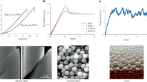 a Dependence of average yielding size \(\bar{S}\) and average stress relaxed \(\overline{\Delta \sigma }\) on p0. Inset: Dependence of average avalanches size \(\bar{{S}_{s}}\) on p0. b Distribution of avalanche size follows a power-law distribution. Inset: Distribution of scaled average stress relaxed by avalanches also follows the same power law. Source data are provided in a Source Data file.