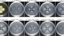 Larvae of the greater wax moth (Galleria mellonella) were infected with Klebsiella pneumoniae and treated with single drugs or drug combinations as previously described85. Caterpillars were purchased from Valomolia (Strasbourg, France). Stock solutions of colistin and nitroxoline were freshly prepared with 20 mM sodium acetate buffer (pH 5). Drug toxicity was preliminarily determined by injecting larvae with serial dilutions of single drugs and combinations. Non-toxic concentrations of the drugs were used for further experiments. Bacterial overnight cultures (grown as described in 'Growth conditions') were diluted 1:100 with fresh MH II broth and incubated at 37 °C with continuous shaking, until an OD600nm of 0.2 was reached. Bacteria were then washed with PBS and adjusted to 5.6 × 107 CFU/ml, corresponding to a median lethal dose of 60–70% after 24 h, as determined in preliminary experiments. Groups of 10 caterpillars per condition were injected with 10 µl of the bacterial suspension into the haemocoel via the last right proleg and incubated at 37 °C. One hour post-infection, caterpillars were injected into the last left proleg with 10 µl of single drugs or drug combinations (0.1 µg/ml colistin and 0.1 µg/ml nitroxoline). Survival was monitored for 72 h. Each strain–drug combination was evaluated in three independent experiments. The statistical analysis was performed using the log-rank test.