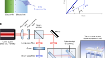 Conventional techniques like cyclic voltammetry (CV) and electrochemical impedance spectroscopy (EIS) are well-established for revealing the macroscopic properties of the EDL, providing valuable insights into the kinetics and thermodynamics of electron transfer and ion diffusion11,12,13. However, these techniques are limited by their inability to provide detailed information beyond the collective behavior of the whole electrode surface. Recent developments, such as Kelvin probe force microscopy (KPFM), enable nanoscale spatial mapping of surface potential within the EDL, while spectroscopic techniques like vibrational sum-frequency generation (VSFG) and second harmonic generation (SHG), examine molecular rearrangements at the charged interface14,15,16. Despite these advances, there remains a gap in achieving the needed temporal or spatial resolution for analyzing real electrochemical systems, like the edge effect of catalysts17, nanoscale kinetic studies18, and multi-functional electrolytes19,20. This limitation highlights the necessity for in-situ monitoring techniques capable of capturing the complex spatial and temporal dynamics at both the steady-state and transient-state electrolyte-electrode interface10,21.